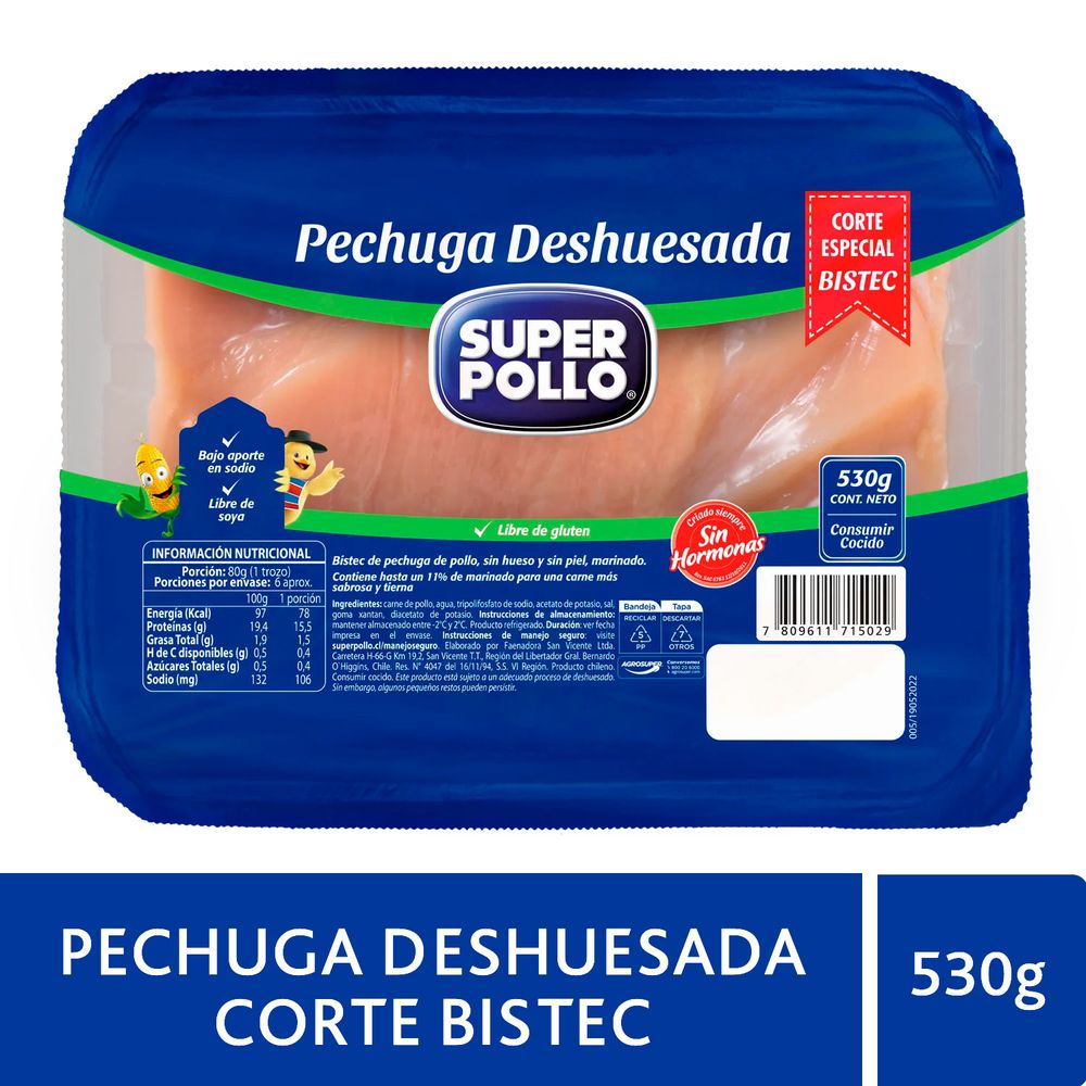 ¡Disfruta de estos ricos Bistec de Pechugas Deshuesadas! Encuéntrala en su formato de 530 g . Tan fácil como sacar del envase, cocinar y disfrutar. Tú solo te preocupas de reunir los invitados y disfrutar a lo grande.