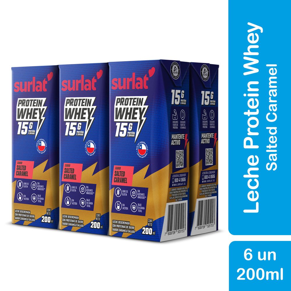 Pack 6 un. Leche Descremada Surlat Whey Protein Salted Caramel 200 ml