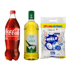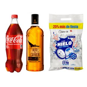 Pack Pisco Alto del Carmen 35° 750 cc + Bebida Coca Cola 1.5 L + Hielo Cuisine & Co 2.5 kg