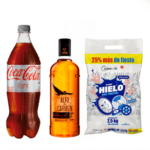 Pack Pisco Alto del Carmen 35° 750 cc + Bebida Coca Cola ligth 1.5 L + Hielo Cuisine & Co 2.5 kg